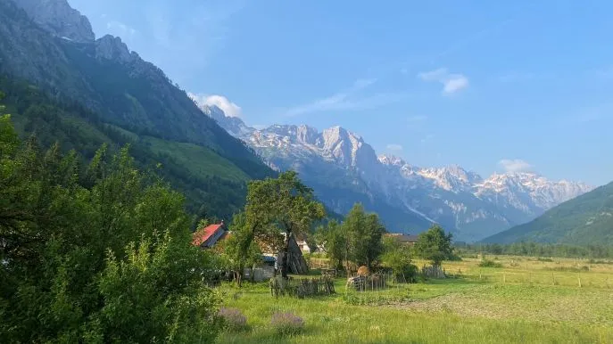 U ontbijt met uitzicht over de koeienweiden omgeven door het bergdecor. Vandaag gaat uw trektocht van start, er staat een pittige hike op het programma. Nadat uw host uw lunchpakketje heeft klaargemaakt voor de dag start u vanuit Cerem met uw bergwandeling naar Valbona. Onderweg ziet u hoe lokale herders op eeuwenoude traditionele wijze hun schapen hoeden door de alpenweiden tussen de grillige rotsformaties. Deze route hebben nog relatief weinig andere wandelaars ontdekt, wat de wandeling alleen maar mooier maakt. U wandelt de Montenegrijnse grens over, te herkennen aan het monument met landvlag halverwege. Hierna maakt u een klim langs de rotsformaties omhoog waar de bergen, afhankelijk van uw reisperiode, op veel plaatsen nog bedekt zijn met sneeuw. Hier kunt u de verkoeling opzoeken en een plekje zoeken om te lunchen. U kunt uw waterfles vullen bij een van de waterpunten langs de bergriviertjes onderweg. Bij het bereiken van de Prossllopit pass daalt u af tussen delen begroeide struiken en bos tot u het kleine bergdorp ziet liggen langs de Lumi i Valbones rivier. Aangekomen in uw guesthouse in de mooie omgeving van de Valbona vallei kunt u uitrusten en genieten van een welverdiend drankje.