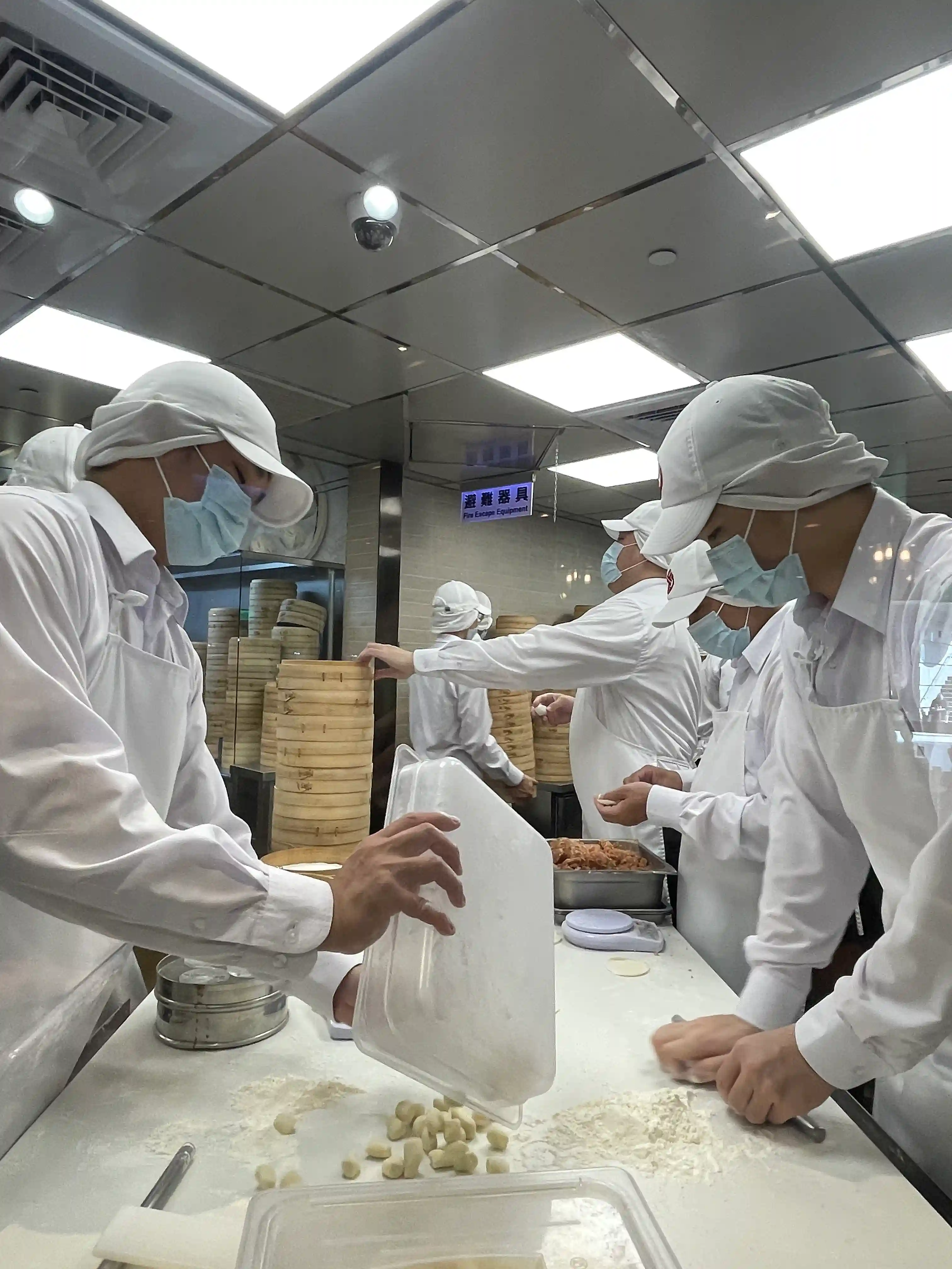 Ik lunch bij Din Tai Fung. Deze keten begon ooit als een klein zaakje in de jaren 50 en werd wereldberoemd door hun xiao long bao, de soupdumplings gevuld met bouillon en vlees. Terwijl ik snel mijn bestelling doorgeef, neem ik tijdens het wachten even een kijkje in de keuken. Door de open keuken kun je door de ramen zien hoe behendig de koks de dumplings rollen en vouwen. Het is een geoliede machine: iedereen heeft zijn eigen taak, het gaat gelijkmatig en razendsnel. Je gaat er gewoon een beetje van staren.