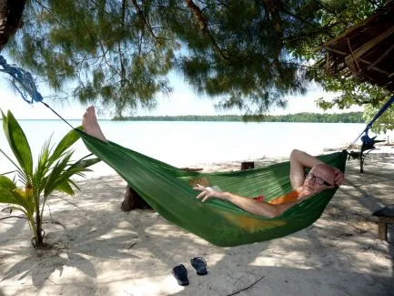 De komende dagen doen we niet veel meer dan luieren in onze hangmat, een boekje lezen op de veranda, een wandeling maken (vooral niet te ver!), langs het strand of naar een uitzichtpunt in de buurt en wat zwemmen in zee. Driemaal per dag schuiven we aan voor een overheerlijke maaltijd. ’s Avonds genieten we onder een heldere sterrenhemel van een koud biertje en de spannende verhalen van onze gastheer. De tijd glijdt voorbij in een serene rust.