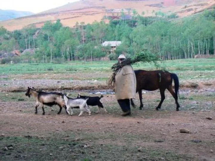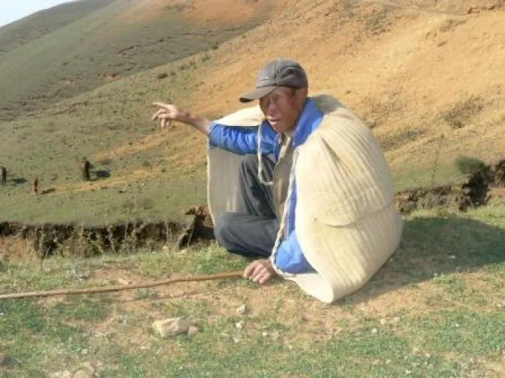In de gehele regio uitstrekkend van West-Guizhou tot boven Kunming, de hoofdstad van provincie Yunnan, worden deze huisgemaakte mantels gebruikt om kou en wind te weerstaan op graslanden als deze.