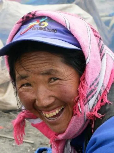 De vrouwen hebben felroze of rood geruite doeken om het hoofd gebonden. De mannen dragen helblauwe jasjes. De oudere vrouwen en mannen in het dorpen dragen zwarte wrongen van gedraaid katoen om het hoofd. De vrouwen hebben een vierkante mooi geborduurde lap in een ruit voor de borst gebonden. Een katoenen ceintuur houdt het geheel bijeen. Ze dragen een zwarte broek met lappen blauwe stof gebonden om de schenen. Daarover worden witte ongebleekte katoenen gedraaide reepjes stof kruislings om de benen gebonden. De vrouwen dragen katoenen schoentjes die zelf geborduurd zijn. Je zou zo denken dat we terecht zijn gekomen in een minderheidsdorp. Maar niets is minder waar. Dit zijn Han-Chinezen.