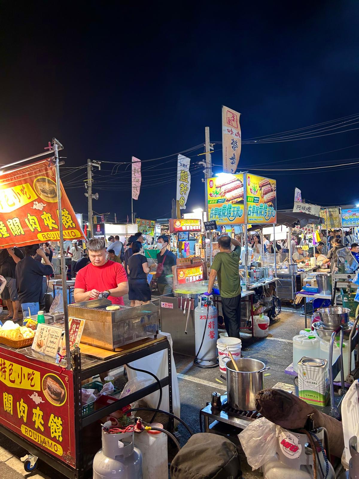 Wat deze nightmarkets zo leuk maakte, was dat je er nog echt tussen de locals liep. In tegenstelling tot de bekendere Garden Night Market, die op donderdag, zaterdag en zondag bruist met tientallen kraampjes vol eten, voelde de Wusheng Night Market en de Dadong Night Market veel rustiger en authentieker.