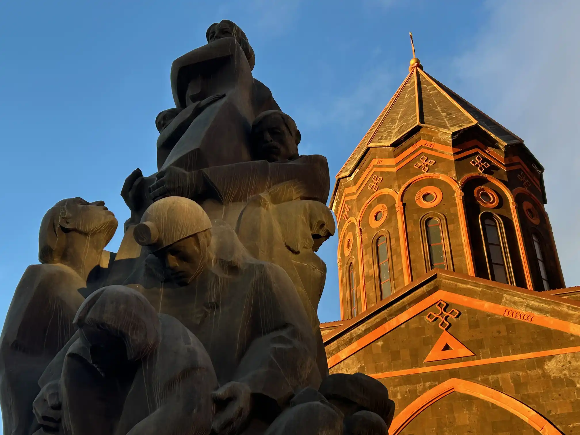 Het centrum van Gyumri wordt gedomineerd door imposante kerken die zowel spirituele als historische betekenis dragen en het religieuze hart van de stad vormen. De Vardapetkerk en de Kathedraal van de Heilige Heilige Drie-eenheid vallen op door hun karakteristieke Armeense architectuur, met robuuste basaltstenen, ronde koepels en fijn gedetailleerde reliëfs die Bijbelse verhalen uitbeelden.