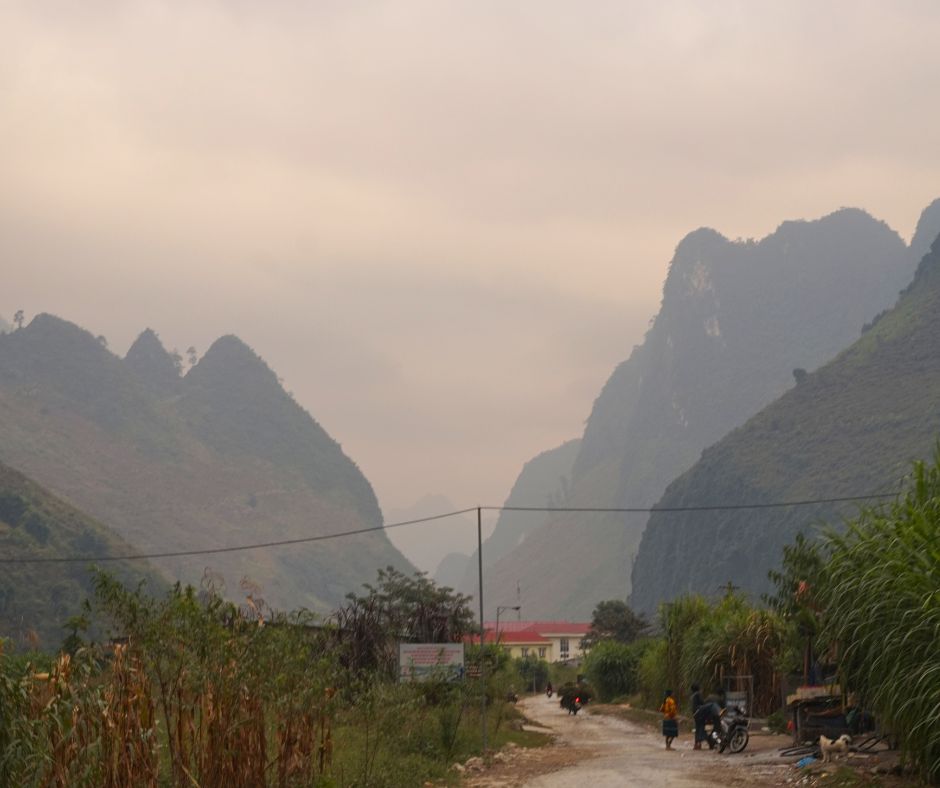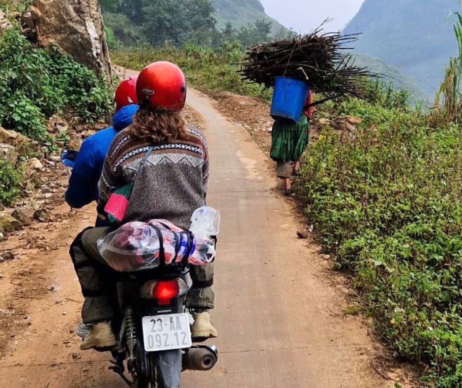 De wekker gaat voor het eerst deze reis, want we gaan 4 dagen en 3 nachten achter op de motor het afgelegen Dong Van Karst Plateau Geopark in het noorden van Vietnam ontdekken. De groep bestaat uit 2 Canadezen, 2 Fransen, 1 Duitser, 1 Braziliaanse, ons en 8 easyriders. Dit zijn locals die de route en omgeving goed kennen en die de Vietnamese wegen veilig weten te navigeren. Ik beland bij de 38-jarige aanvoerder van de groep achterop en mijn vriend bij de jongste van pas 18 jaar.