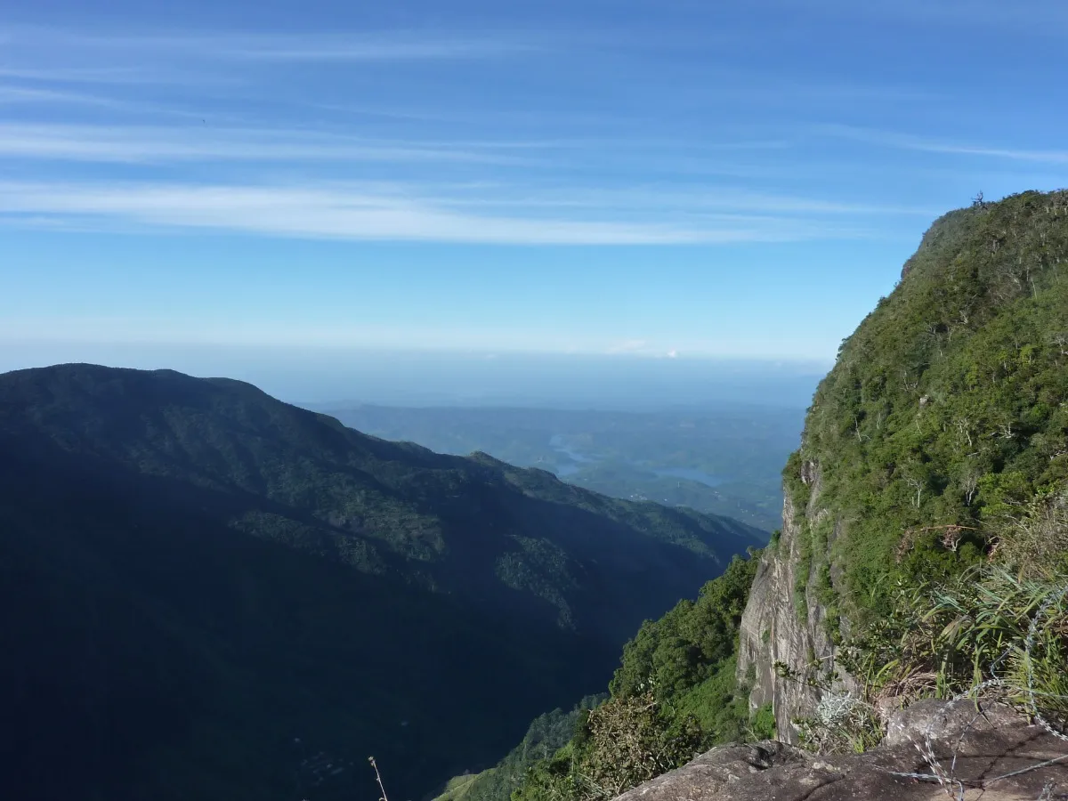 Onze eerste stop was bij Little World's End, een iets lager gelegen variant van World's end, een adembenemend uitzichtpunt waar de afgrond abrupt leek op te houden, alsof de wereld daar echt eindigde. Vervolgens liepen we door naar World’s End, waar we wisten dat we vroeg moesten zijn om nog te kunnen genieten van het ononderbroken uitzicht voordat er wolken zouden hangen. Het was geen gegeven dat de wolken er niet zouden hangen, dus soms heb je pech en kun je niks van het uitzichtpunt zien. Maar we hadden geluk! Er was geen wolkje aan de lucht te bekennen, dus we konden genieten van het indrukwekkende uitzicht.