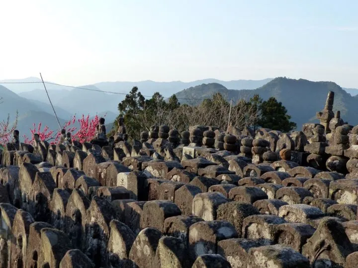 Bij elke schrijn langs de Kumano Kodo staat een bord met een verhaal erop over een gebeurtenis die op die plek zou hebben plaatsgevonden. Vaak zijn het verhalen uit de 12e eeuw toen vele keizers en vrome monniken dit pad liepen. Zo kom ik na een stevige klim zigzaggend over bemoste keien op een steile helling het schrijn van Koma Jizo tegen. Koma Jizo is vernoemd naar een pelgrimsmonnik die de dood vond op Kumano Kodo precies op de plek waar deze schrijn nu staat. Het verhaal gaat dat op het moment dat hij de dood voelde komen een koma, een muntstuk met een vierkant gaatje erin, op zijn tong legde en stierf.