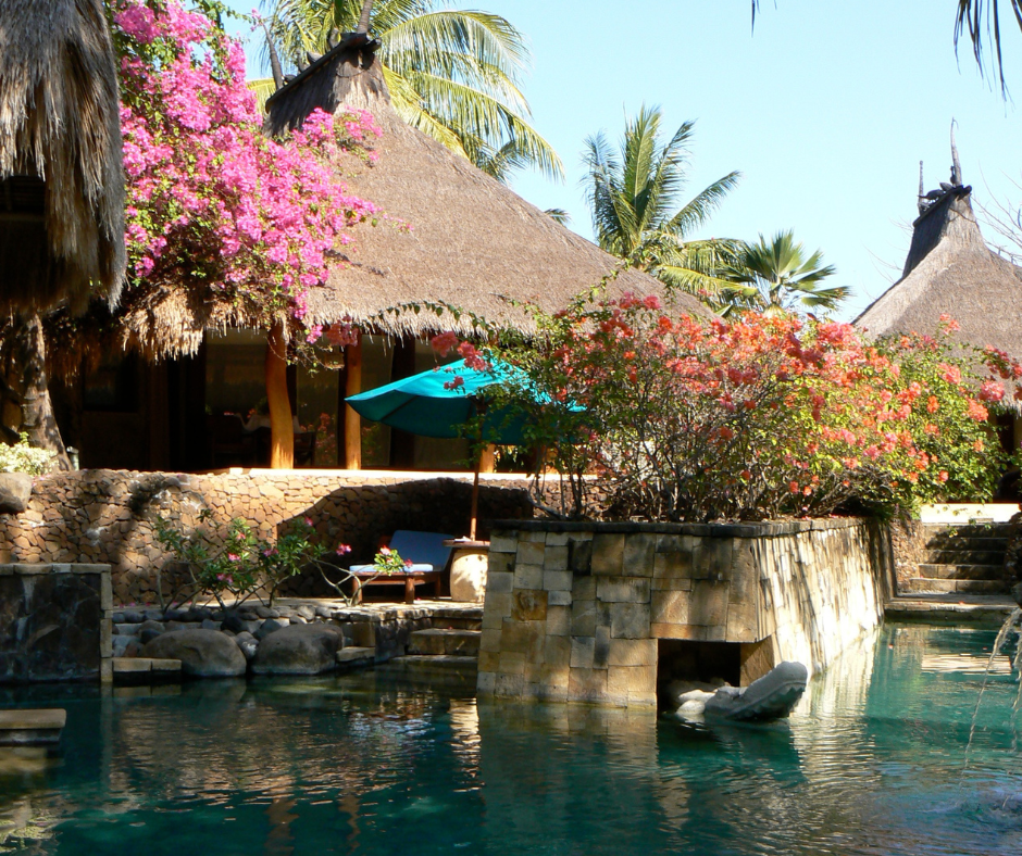 We namen afscheid van Jim en werden in een soort golfkarretje naar onze eigen Sasak villa gebracht. Ons hart maakte een sprongetje toen het golfkarretje stopte bij ‘onze’ voordeur. De knalroze blaadjes van de bougainvilleboom die ons verblijf liefkozend omarmde, van dak tot aan de grond, gaven het geheel iets sprookjesachtigs.