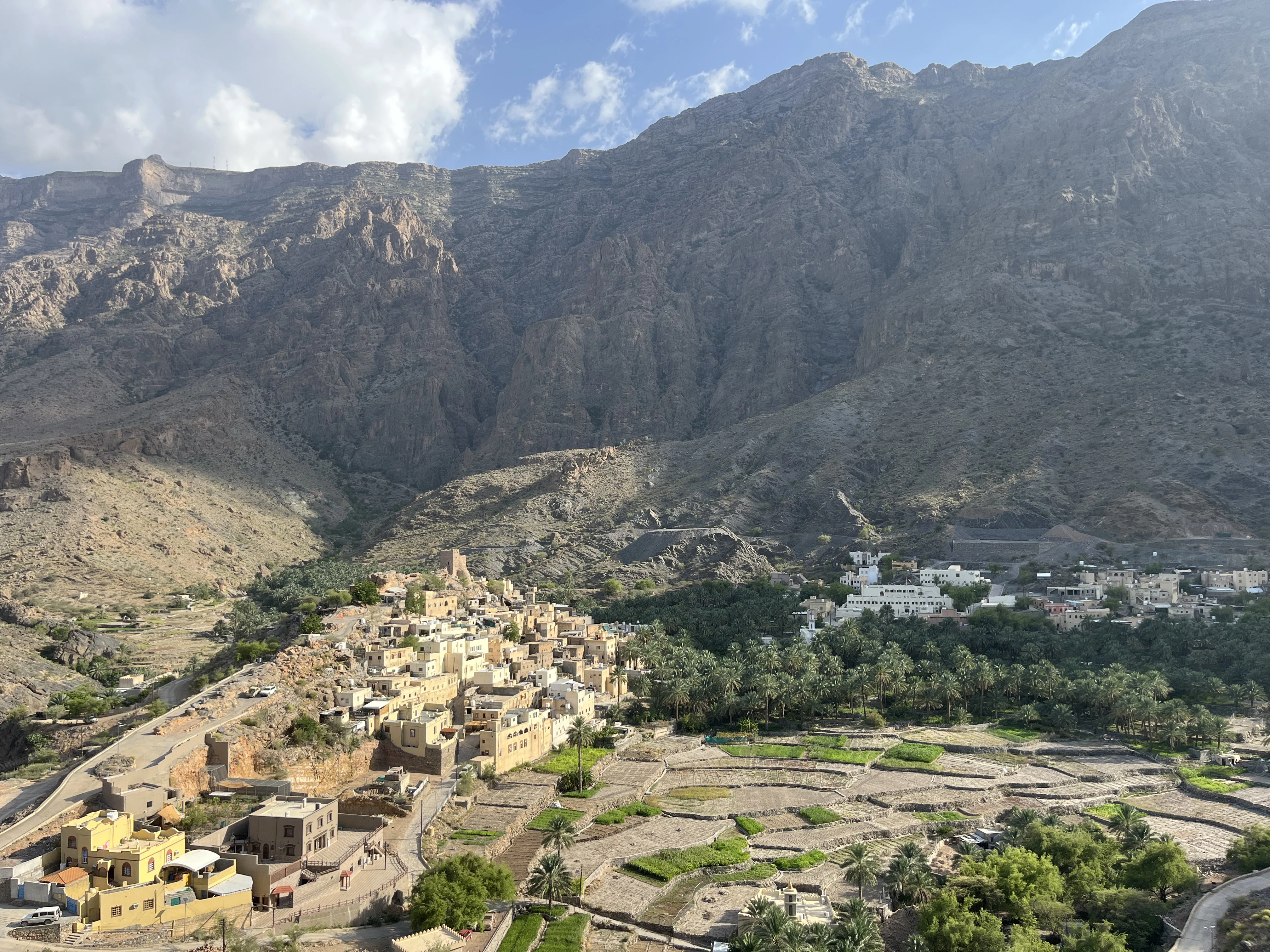 Na een fijne nachtrust in de groene omgeving van Misfat al Abriyyin en een korte wandeling door het landschap met prachtig uitzicht tussen de palmbomen is de volgende stop Al Hamra.