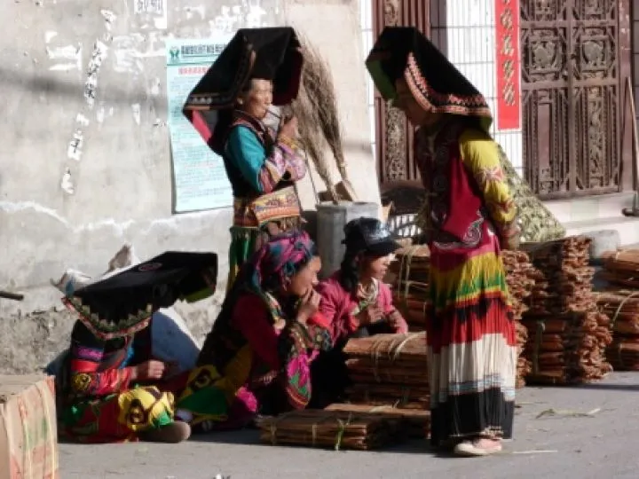 Een mooie dag vandaag. Ik begin met een bezoekje aan de lokale markt, waar ik een aantal kleurrijke Grote Kappen Yi zien. Deze vrouwen dragen enkele van de mooiste klederdrachten in heel China en met name hun hoofddeksels zijn imponerend.