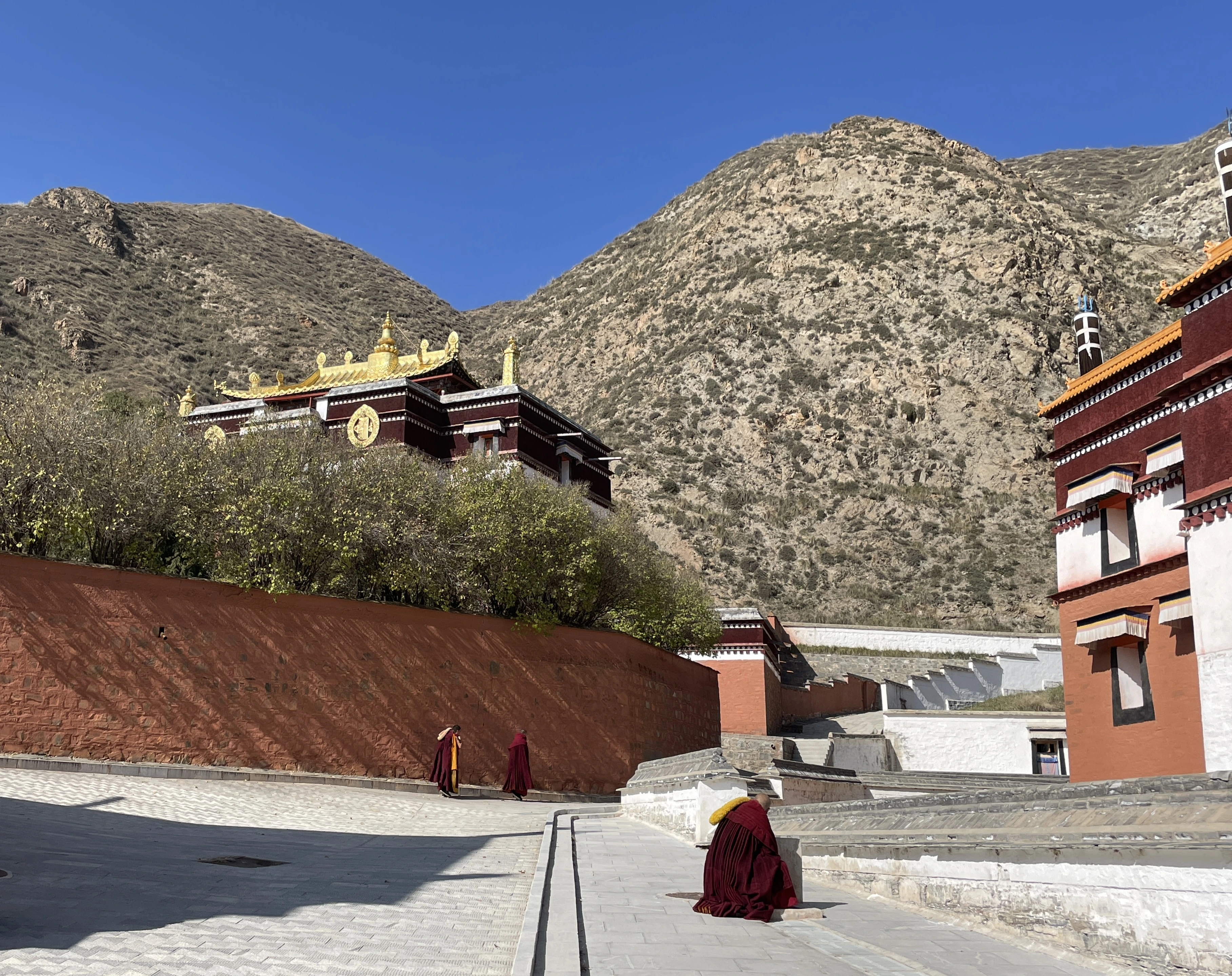 We rijden door naar Xiahe, of eigenlijk Labrang, op zo’n 3.000 meter hoogte in het Amdo-gebied. Het stadje groeit, maar voelt voor mij nog steeds rustig. In Xiahe staat het Labrang-klooster, het grootste klooster buiten Tibet zelf en al een hoogtepunt op zich. Zo’n 2.000 monniken studeren en leven hier. Rondom de stad liggen graslanden waar nomaden met hun schapen en yaks trekken, al verandert ook dat langzaam met de treinspoor die er doorheen wordt gelegd. Niet heel inspirerend voor de uitzichten, maar wel een goede verbinding voor alle mensen die hier wonen.