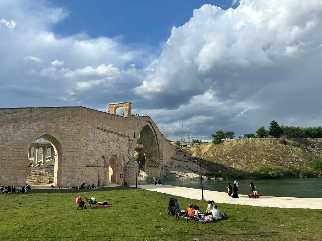 Vanuit Bitlis reizen we door nog steeds een mooi, maar steeds kaler wordend landschap naar Diyarbakir, de hoofdstad van het Turkse deel van Koerdistan. Onderweg bezoeken we de 12e eeuwse historische boogbrug van Malabadi. Het is einde middag en overal zitten families gezellig te picknicken aan de voet van de brug bij de rivier.
