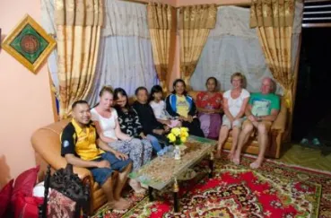 We rijden vanaf Berastagi richting het Toba meer, een lange rit van ongeveer 6 uur. Helaas hebben we vandaag geen mooi weer en hangt er veel smog in de lucht. De hevige rook en smog die het gebied bedekt, ontstaat door het illegaal afbranden van palmolieplantages en doordat boeren hun land aansteken zodat zij dit kunnen ontginnen. Dit is een jaarlijks terugkerend probleem vertelt onze chauffeur. Vanaf het plaatsje Prapat nemen we het pontje naar het schiereiland Tuktuk. Wat ons opvalt zijn de vele lege en verlate hotels die je hier ziet. Ooit was deze plek een grote toeristische trekpleister maar dit is opgedroogd. Wij overnachten in het Tabo Cottages waar we een prachtige suite voor ons zelf krijgen. Erg leuk hotel met eigen bakkerij en heerlijk eten! We besluiten het schiereiland per scooter te gaan verkennen ook dit is weer een nieuw avontuur voor mijn ouders! We maken een leuke tocht over het eiland langs de kust, groene rijstvelden en batak dorpjes met de nog traditionele huizen.