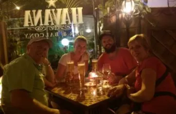 Samen met zijn zus snijden we de ingrediënten en berieden we samen de gerechten. Tenslotte genieten we met de hele familie van onze zelf gemaakte Indonesische maaltijd. Een bijzonder ervaring! We overnachten in de homestay van Ikbal en Noni. Een eenvoudig bungalowtje met een bed en klamboe, hurktoilet en mandi. Mijn ouders krjigen het bungalowtje met westers toilet. Ondanks deze eenvoudige faciliteiten, genieten ook mijn ouders van deze prachtige en bijzondere plek. Vanaf ons terras kijken we uit over de groene rijstvelden, die worden omzoomd door steile kliffen, wat een schitterende plek!
