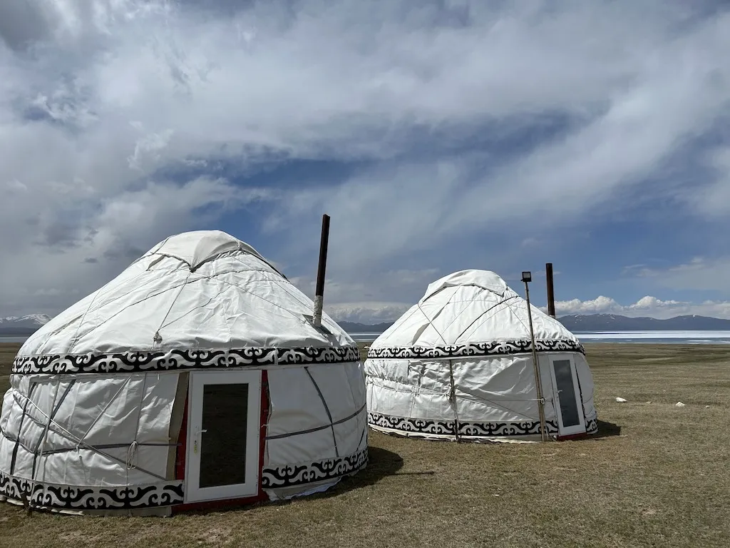 Er zijn diverse yurtkampen bij het Son Kul meer. Het kamp dat Dimsum Reizen gebruikt is een van de mooist gelegen en meest comfortabele kampen. Je slaapt in een traditionele yurt, waar bedden staan. Er is een houtkachel, die 's ochtends in alle vroegte opgestookt wordt.