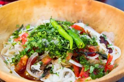 's Avonds bezoeken we de Centrale Moskee, de grootste in Centraal-Azië, en genieten we van een Afghaans diner met onverwachte gerechten, zoals forel.