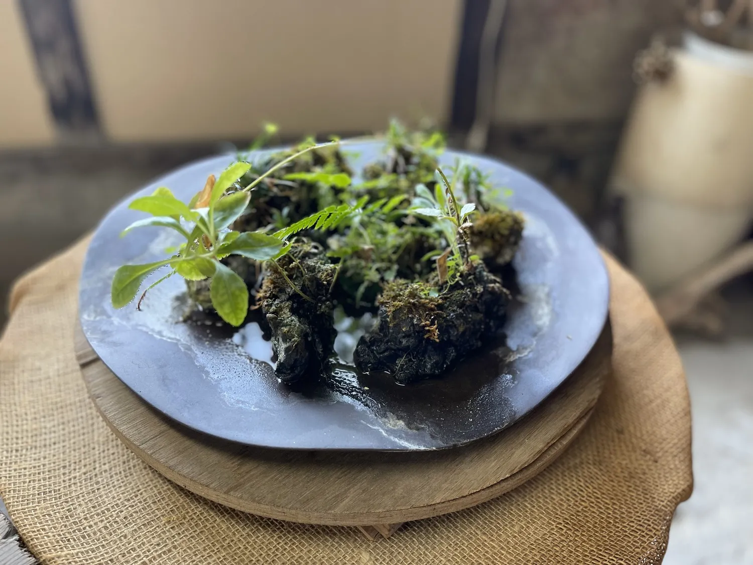 Het bordje 'Kom binnen in Tomo's Wereld' lokt me. Ik stap binnen en zie een vrolijke jonge vrouw met een deegroller een groen stuk klei uitrollen. Geconcentreerd met langzame bewegingen rolt ze de droge kleiplak uit tot een dikte van een centimeter of drie. Ze maakt er prachtige platte schalen van.