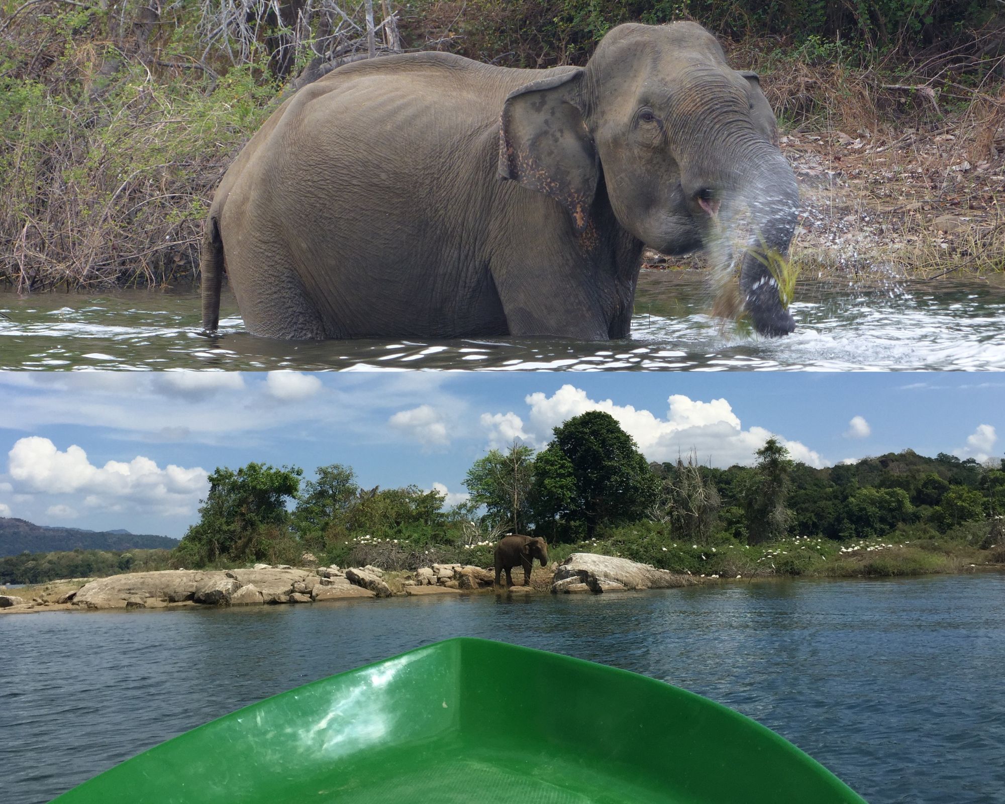 De stilte is bijna tastbaar. Alleen vogelgezang en ruisende bladeren vullen de lucht. In een houten boot glijd je over smalle watergangen, langs mangrove en dichte jungle. In de verte baden olifanten in het water, half ondergedompeld, hun oren rimpelend in het zonlicht. Geen rijen jeeps, geen drukte — alleen jij, de natuur en het moment.
