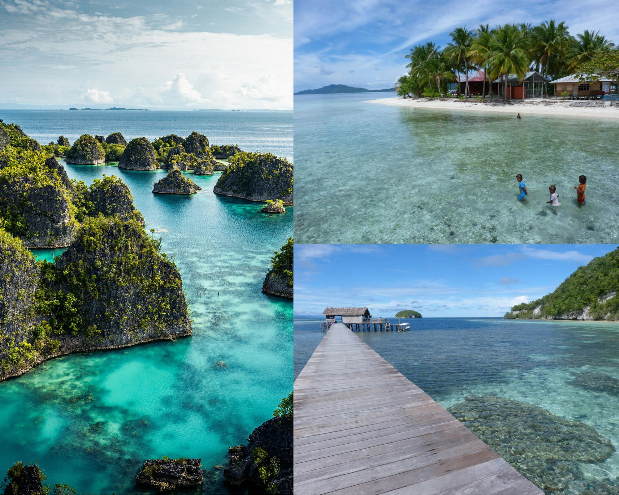 De lucht is helderblauw en het water zo doorzichtig dat je de schaduw van een schildpad ziet glijden over het koraal. Je vaart tussen talloze kleine eilandjes: kalksteenrotsen, begroeid met jungle, die oprijzen uit een turquoise zee. Onder je ontvouwt zich een van de mooiste onderwaterwerelden ter wereld — een levend schilderij van koraal en scholen vissen, misschien zelfs een reuzenmanta die traag voorbij zweeft. Dit is Raja Ampat, waar tijd lijkt te verdwijnen.