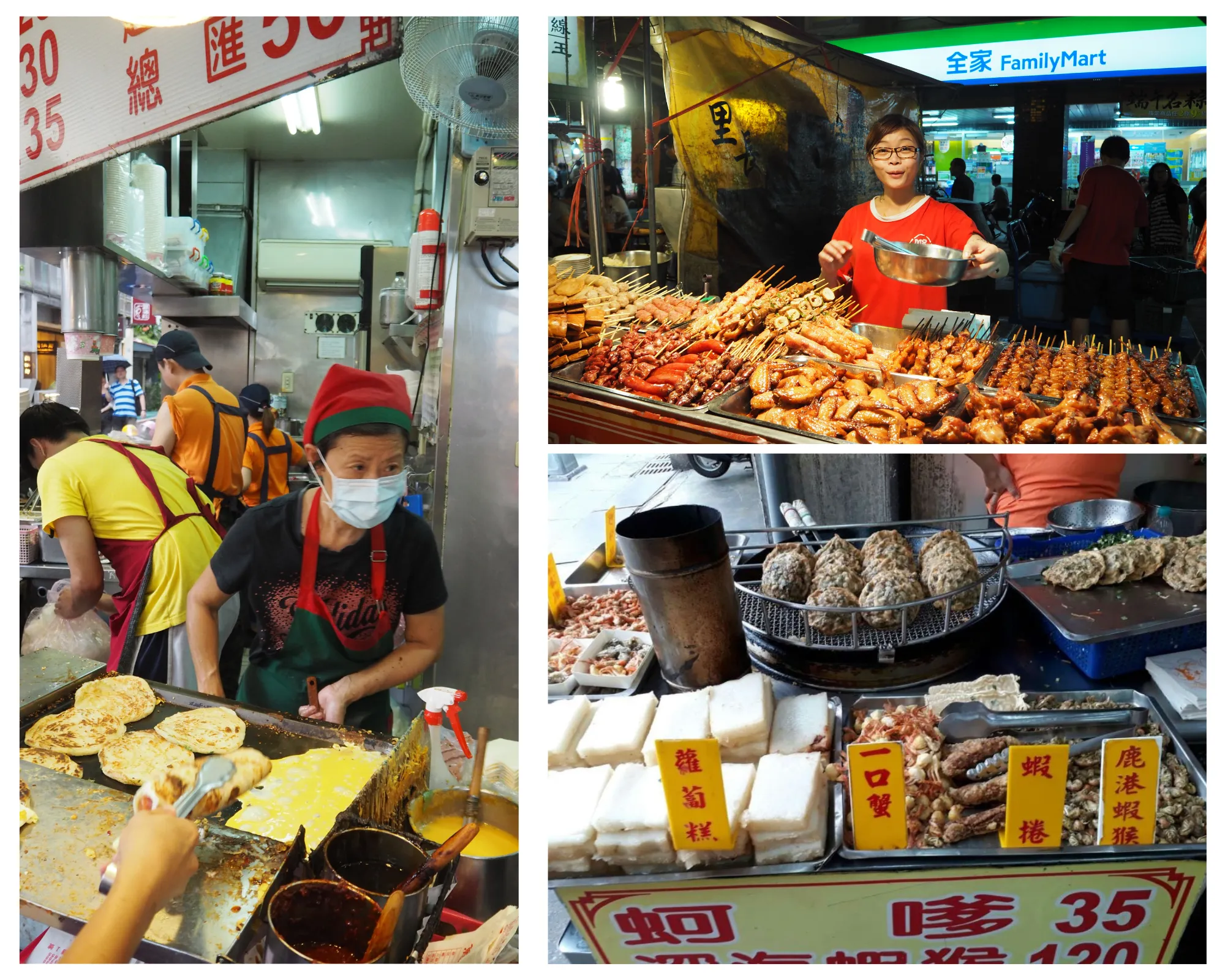 Maar het leukste zijn de “xiaochi”. Dit zijn kleine hapjes waarmee je de hele avond kunt blijven proeven. Lokale favorieten zijn de oesteromelet, pittige varkensbuns met peper en de populaire “little sausage in a big rice sausage” – een worst verpakt in een kleefrijstworst. Alles ziet er verrukkelijk uit!