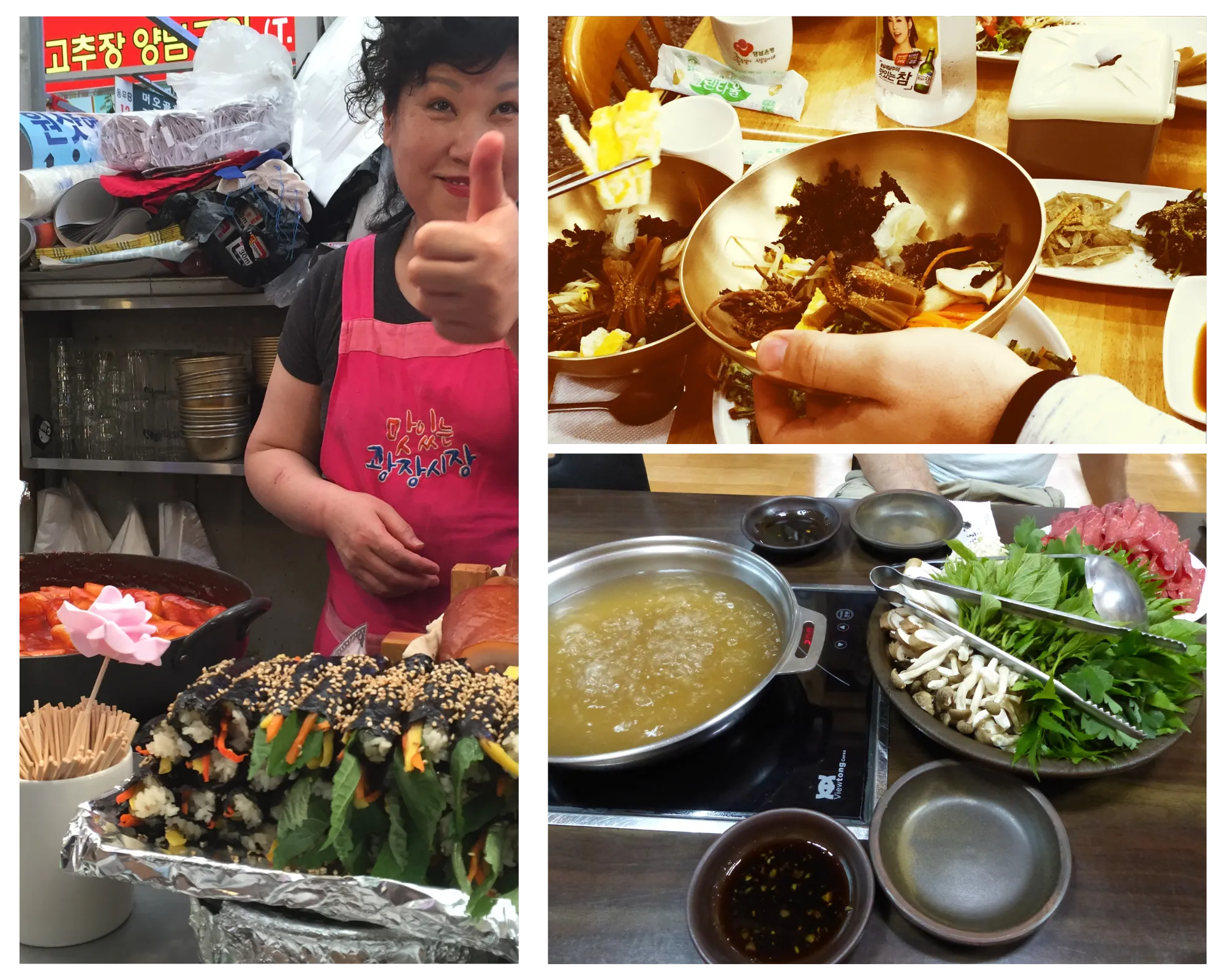 Voor me stond een zware metalen kom gevuld met perfect gerangschikte groenten. Op een bed van rijst lagen spinazie, taugé, zeewier, shiitake en onkerrode blaadjes. Naast de kom stonden schaaltjes kimchi en een bakje felrode gochujang.