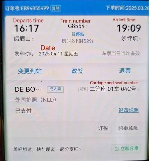 Treinreizen hier is strak geregeld. Je ticket is gekoppeld aan je paspoort, dus je hoeft niet te stoeien met printjes of QR-codes. Bij binnenkomst op het station: tassen op de band, paspoort laten zien — en klaar. Je hoeft je ticket niet te laten zien aan personeel, maar houd ‘m wél bij de hand: je stoelnummer staat erop