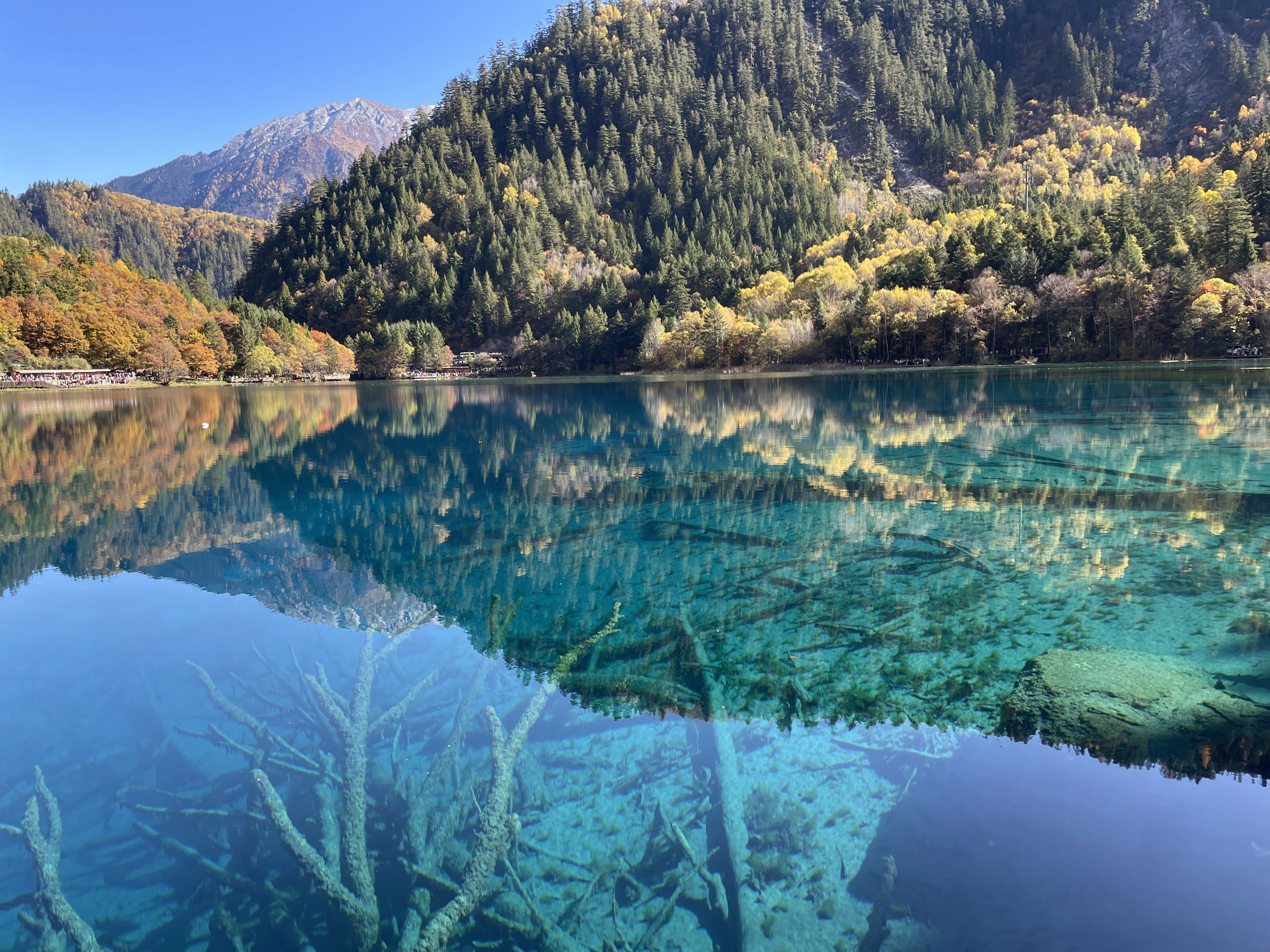 En als je dan in het noorden van Sichuan bent en ook nog in het najaar, kon ik natuurlijk niet het natuurschoon van het Jiuzhaigou Nationaal Park overslaan. Denk in het najaar aan verschillende kleuren als rood, geel & oranje bladeren en dan met het felblauw van de verschillende meren. Werkelijk prachtig!