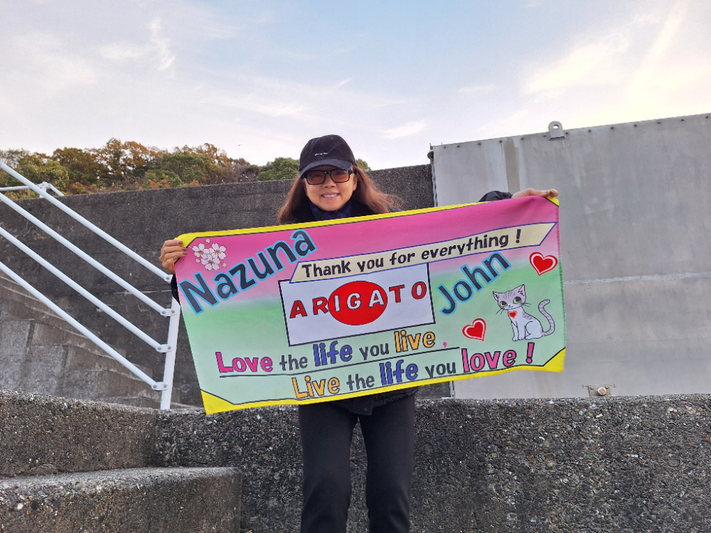 De vele uitzwaaimomenten onderweg zal ik nooit vergeten, maar deze was wel heel bijzonder. Om 7 uur zit ik op de ferry als ik ineens mijn naam hoor. Het is Mari, mijn host, die me komt uitzwaaien met een groot spandoek. Snel nog een selfie op de kade, want de boot vertrekt stipt op tijd. Net voordat we wegvaren, zie ik hoe het spandoek wordt ingewisseld voor de Nederlandse vlag. Wat een prachtig begin van de dag en één van de vele geluksmomentjes.