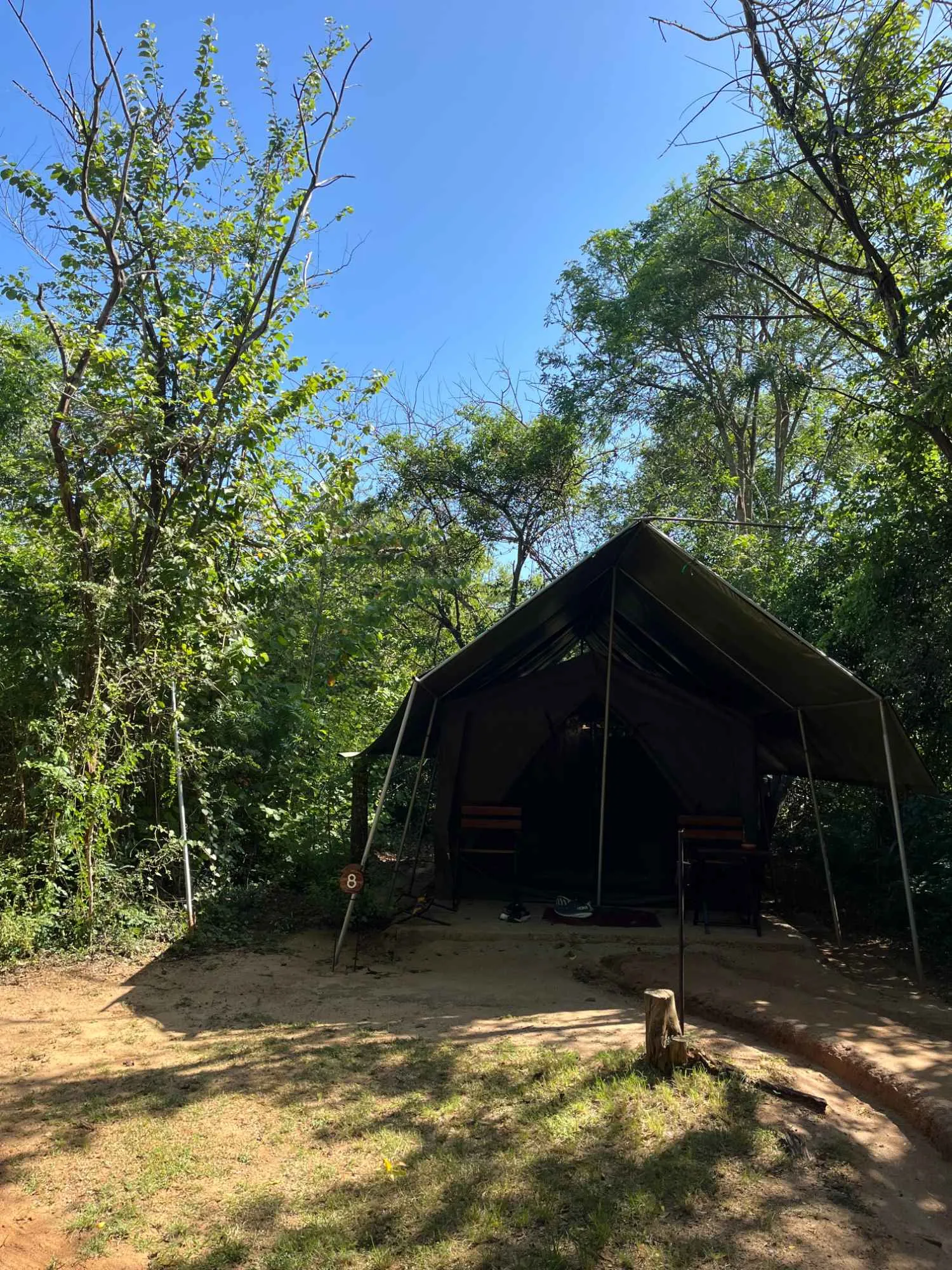 In de middag arriveerden we bij het Yala Big Game Camp, helemaal klaar om echt de natuur van Sri Lanka in te gaan. We werden hartelijk ontvangen door het vriendelijke personeel, die ons direct enthousiast uitlegden wat we konden verwachten. Het programma klonk fantastisch: later die middag konden we al een stukje meelopen met een ranger over het terrein en na een diner bij kaarslicht stond er een avond bushwandeling op de planning om op zoek te gaan naar wildlife. Met die vooruitzichten werden we naar onze tent begeleid, en wat een tent was het!