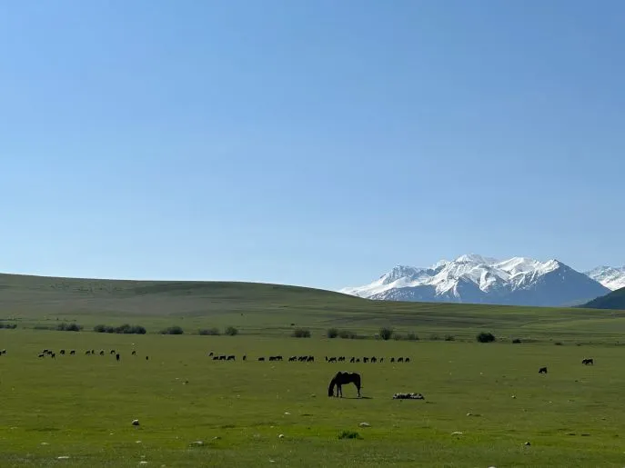 U vervolgt de tocht langs het meer. Aan het einde van het meer rijdt u de bergen in en komt via een mooie route aan in Jyrgylan. Deze vallei, op de plek waar vroeger een kolenmijn was, is een paradijs voor wandelaars. Vanuit uw yurtkamp loopt u zo de bergen in en kunt zelf bepalen hoe lang u wilt lopen.
