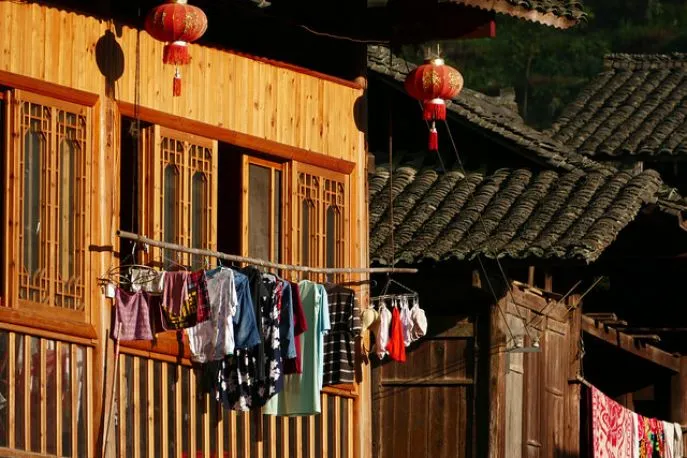 Dit fantastische dorp van de Tujia minderheid ligt in een brede vallei in de bergen. Het is officieel een erfgoed-dorp, wat betekent dat de overheid heeft bepaald dat er niets mag worden afgebroken of bijgebouwd. Het bijzondere is dat dit dorp niet een openluchtmuseum is geworden en dat er geen hordes toeristen komen. Het is en blijft zoals het altijd was. Het houten huis waar u verblijft is van Yeye, grootvader. Hij woont er nog met een zoon die er niet altijd is. Het is werkelijk een prachtig huis met veel vertrekken waarvan de grootste bestemd is voor het voorouderaltaar. Het uitzicht vanaf de veranda is werkelijk paradijselijk. Het is hier praten met handen en voeten want Yeye spreekt geen woord over de grens, maar hij doet er alles aan om uw verblijf tot een genot te maken. Het eten wordt bereid door Ayi die een paar huizen verderop woont. Hier wilt u niet meer weg. De slaapkamers hebben airco, het woongedeelte niet.