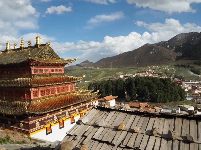 U reist vanuit Xiahe naar het prachtige dorpje Langmusi, een schitterende tocht vaneen uur of vier rijden over de graslanden van provincie Gansu. Onderweg ziet u Tibetaanse nomaden die hun grote zwarte tenten hier hebben opgezet. U kunt even een tussenstop maken in het plaatsje Hezuo. Hier ziet u een karakteristieke Milarepa tempel die boven de omliggende huizen uittorent. Eenmaal aangekomen in Langmusi moet u het weer even rustig aandoen, u bent nu op 3800 meter hoogte!