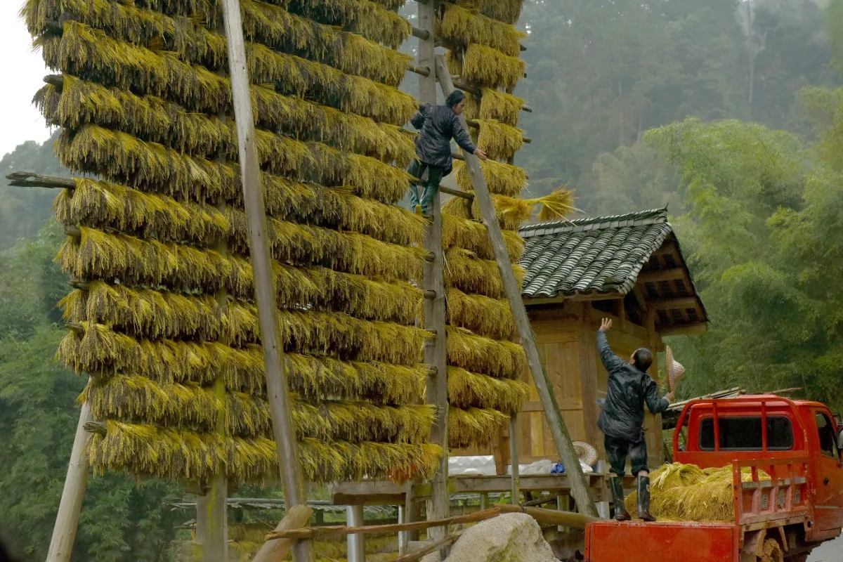 Onderweg kun je zien hoe rijst in grote getalen wordt gedroogd. Nadat de rijst wordt geoogst, wordt deze vaak op bamboematten of houten rekken in de zon gelegd om te drogen. Dit gebeurt meestal in kleine dorpen op de berghellingen, waar de terrassen vol met rijstvelden liggen. Het drogen van rijst is essentieel om de rijstkorrels langer te kunnen bewaren en om schimmel te voorkomen.