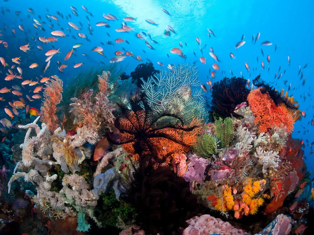 Een prachtige onderwaterwereld met dolfijnen, koraalriffen en schildpadden