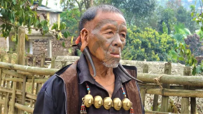 U verlaat Assam en rijdt over een goede maar drukke weg naar de grens met Nagaland. Onderweg passeert u verschillende theeplantages en het stadje Sivasagar. Na drie uur rijden komt u bij de grensplaats Naganimora. Na de formaliteiten rijdt u over een slechte weg verder Nagaland binnen naar het dorpje Mon. Onderweg kunt u het Konyak dorp Wakching bezoeken. Eind van de middag komt u aan in Mon. Mon is de thuisbasis van de fascinerende Konyak Naga stam. De Konyaks staan bekend om hun getatoeëerde gezichten, dragen grote hoorns in hun oren, hebben zwart gemaakte tanden en ze staan bekend als koppensnellers; al behoort het koppensnellen inmiddels tot het verleden. Wanneer ze op de markten verschijnen om hun landbouwproducten te verkopen zijn de Konyaks een opvallende verschijning. Het dorpshoofd - de Angh - heeft een aanzienlijke macht over zijn volk. Zijn huis is een weerspiegeling van zijn macht en glorie en is versierd met zowel menselijke als dierlijke schedels.