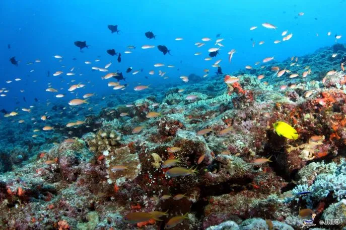 Voor de kust van Okinawa liggen prachtige koraalriffen, wat