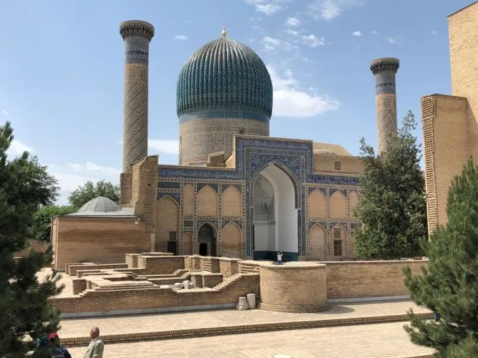 De Gur-Emir is een van de meest monumentale gebouwen uit het tijdperk der Timoerieden. In dit mausoleum ligt Timoer Leng zelf begraven. Samarkand is niet alleen een stad van schoonheid, romantiek en poëzie, het is ook een 'gewone sovjetstad'. Rond de monumentale gebouwen is een Russische wijk verrezen, die een heel andere sfeer uitademt, die van het tsarisistische Rusland van begin 20e eeuw. Het is zeker leuk, om ter afwisseling, ook eens door deze wijk te wandelen. Ga op zoek naar de Russisch-orthodoxe kerk of de Armeense kerk.