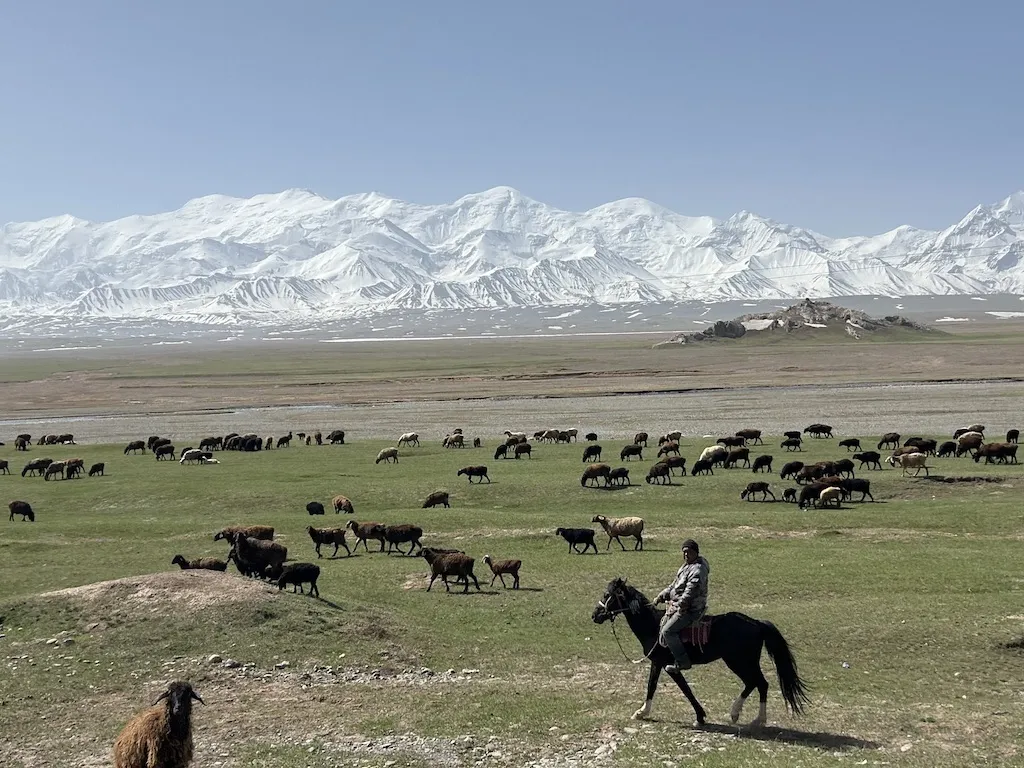 Onderweg richting Tashkurgan passeert u de Kulma-pas op 4300 meter hoogte, waar de grens met Tadzjikistan ligt. Daarna verandert het landschap: brede graslanden verschijnen en kuddes schapen en yaks grazen in het open veld.