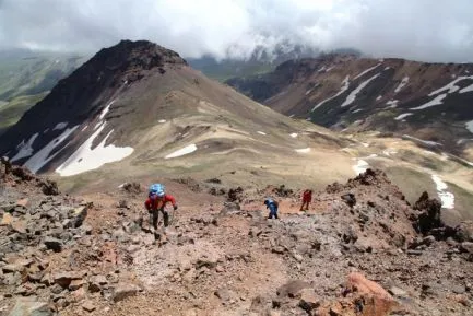 Mt. Aragats is een uitgestorven vulkaan en de hoogste berg van Armenië. De vier pieken van Mt. Aragats zijn allemaal boven de 4000 meter hoog. De hoogste piek is 4095 meter en is in één dag te beklimmen. U kampeert bij het Kari meer op 3200 meter, en loopt in zo'n 7 uur de tocht op en neer naar de top. Dezelfde dag kunt u nog terugkeren naar Yerevan.