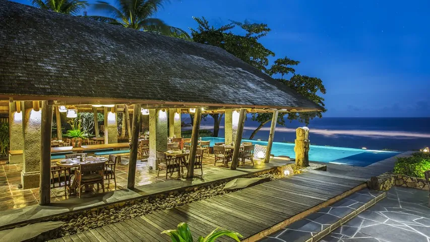 U overnacht komende dagen in een kleinschalige Ecolodge die zich heeft gevestigd op het strand. De lodge strekt zich uit over een groot terrein; u heeft veel privacy en wordt enkel wakker van het zachte geluid van de golven en natuur. De Ecolodge is voornamelijk gebouwd van natuurlijke materialen. De meeste materialen zijn gevonden op het strand, aangespoeld, of drijvend gevonden in zee. Elektriciteit wordt enkel verzorgd door zonnepanelen en een generator en in het restaurant wordt gekookt met voornamelijk lokale producten. Er staan veel visgerechten op de kaart en de gerechtjes hebben een Italiaans tintje. Heerlijk genieten dus! Er worden dagelijks Yoga-klassen gegeven op de top van een berg, waar u tussen de yoga-houdingen door, een waanzinnig uitzicht heeft over het eiland.