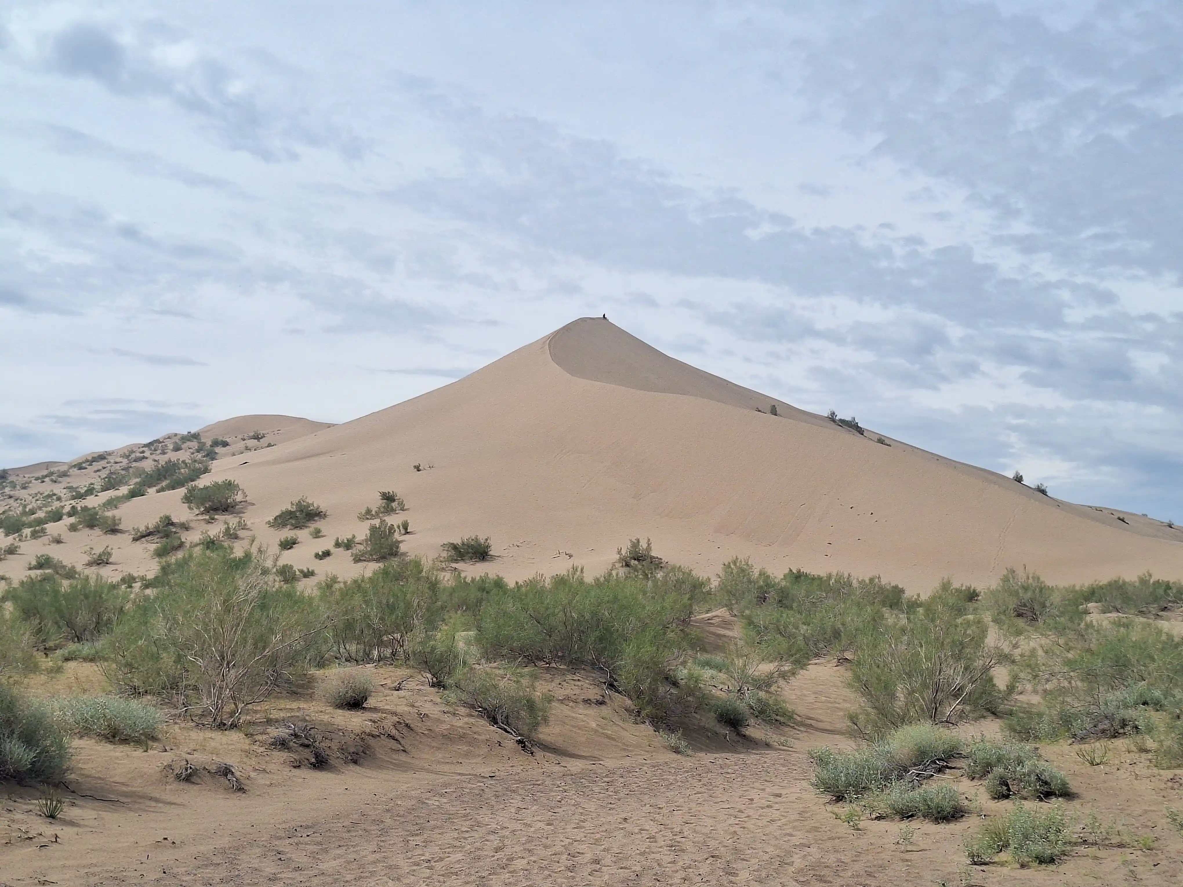 Het icoon van het park is zonder twijfel de Zingende Duin. Deze gigantische zandberg, die zo’n 150 meter hoog is en meer dan een kilometer lang, lijkt op magische wijze midden in de dorre steppe te zijn neergezet.