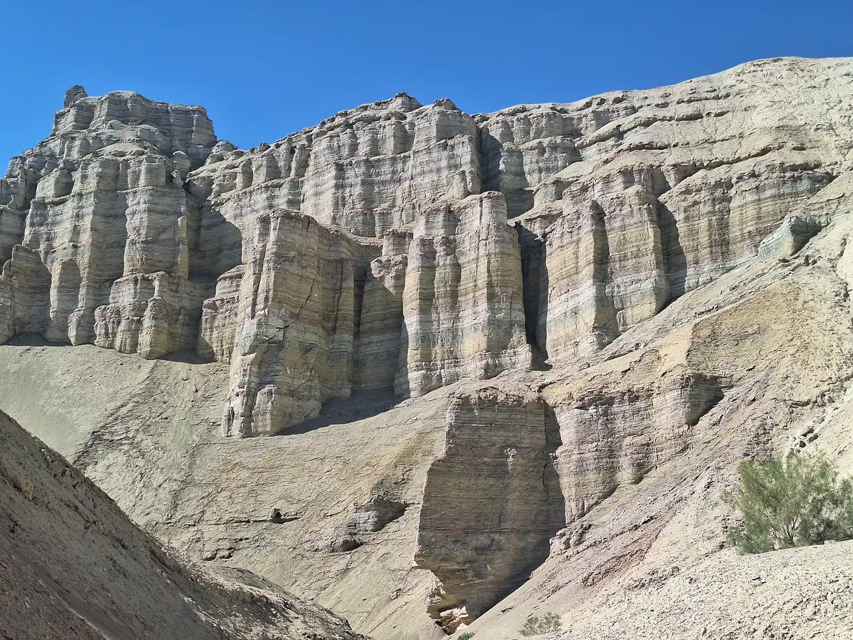 Als je van geologie houdt, zijn de Aktau-bergen (wat "Witte Bergen" betekent) een droom. Dit is geen standaard bergketen; het is een eeuwenoude zeebodem die door miljoenen jaren erosie is gevormd tot een waar kleurenspektakel. Je wandelt hier tussen lagen van rood, oranje, wit, roze en groen gesteente. Het is een surrealistisch landschap waar je gemakkelijk een hele middag kunt verdwalen in de droge rivierbeddingen en ravijnen.