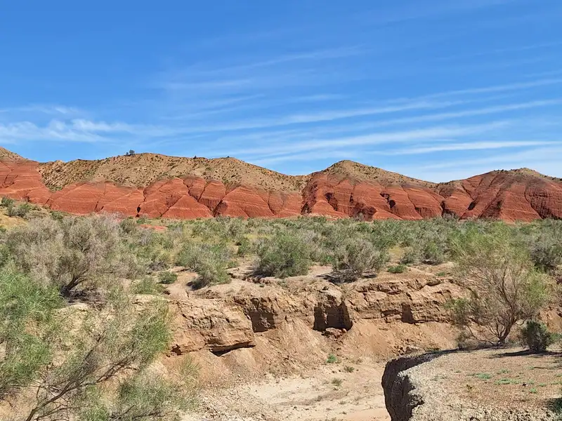 Midden in dit dorre woestijnlandschap vind je verrassende oases, zoals bij Kosbastau. Dankzij warm ondergronds water groeien hier bomen die er eigenlijk niet thuishoren. Het pronkstuk is een indrukwekkende wilg van maar liefst 700 jaar oud. Het is een oase van rust en een perfecte plek om even te ontsnappen aan de zon.