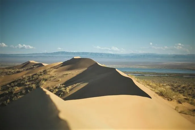 Na twee dagen op de pistes begint uw rondreis door Kazachstan. U verlaat Almaty en rijdt naar het Altyn Emel National Park. Bij aankomst in het dorp Basshi (Kalinino) wordt u naar het hotel gebracht waar u kunt inchecken. Vervolgens rijdt u naar de Singing Sand Dune. De zingende duin bestaat uit twee zandbergen van ongeveer 150 meter hoog. Grappig genoeg stellende de meeste mensen zich het geluid van de zingende duin als een zacht en rustig melodietje voor. Niets is minder waar - bij zonnig en winderig weer produceert de duin een geluid dat vergelijkbaar is met dat van een brullende reactor. Een zeldzaam fenomeen! Eenmaal op de top kunt u van het uitzicht genieten over het Altyn Emel park en een wandelingetje maken.