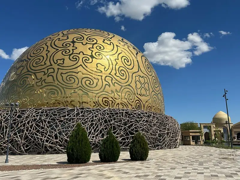 Het Mausoleum van Khoja Ahmed Yasawi in de stad Turkistan, Kazachstan, is een architectonisch meesterwerk dat een cruciale plek inneemt in de Centraal-Aziatische geschiedenis. Dit monumentale bouwwerk werd in de late 14e eeuw in opdracht van Timoer Lenk gebouwd op de plek waar de soefimeester en dichter Ahmed Yasawi begraven lag. Het mausoleum is een iconisch voorbeeld van de vroege Timoeridische architectuur en staat bekend om zijn imposante koepels, minutieus gedetailleerd tegelwerk en de enorme pishtaq (portaalboog). Ondanks het feit dat de bouw door de dood van Timoer Lenk nooit volledig is voltooid, blijft het gebouw een indrukwekkend symbool van islamitische kunst en religieuze devotie, wat in 2003 werd bekroond met een inschrijving op de UNESCO-Werelderfgoedlijst.