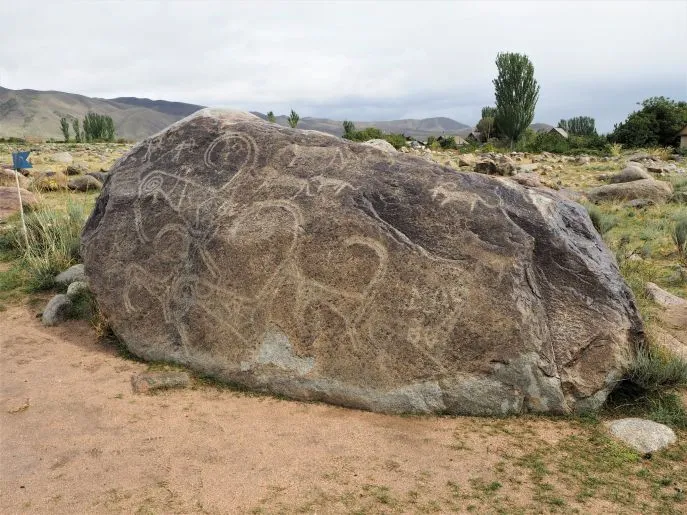 U vervolgt uw weg naar Cholpon Ata mooi gelegen aan het Issyk Kul-meer. Dit meer