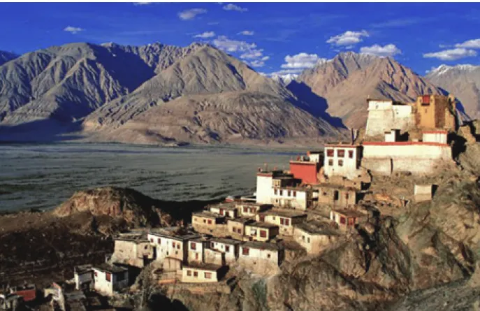 Vandaag verkent u de Nubravallei per auto en, als u dat wilt, te voet. Nubra is een idyllische enclave tussen de bergen van Ladakh en de fameuze Karakoram. Er is veel te zien en u moet dus kiezen. Het is zeker aan te raden om enkele van de fraaie gompa’s (kloosters) van Nubra te bezoeken, zoals Deskit Gompa, vanwaar u panoramisch uitkijkt over de vallei, en Samsthanling Gompa in Sumur. De laatste is vooral bekend om de prachtige mandalas die gemaakt worden door de monniken. Mandalas zijn ingewikkelde en kleurrijke zandschilderingen die gemaakt worden met ‘meditatie’ als doel. Daarnaast kunt u een bezoek brengen aan een oud, maar goed geconserveerd traditioneel ‘herenhuis’ en de bazaar van Nubra’s minihoofdstadje Deskit. Indien u van wandelen houdt, kunt u een korte wandeling maken naar een klein, goed verstopt meertje, of een meer serieuze halve dagtocht ondernemen naar één of meerdere kloostertjes in de bergen die alleen te voet te bereiken zijn. Dit zijn geen hele zware wandelingen, maar een goede wandelconditie is wel gewenst. Daarnaast is het mogelijk om een rit per kameel door de duinen bij Hundar te maken of per jeep de rivier (die hier inmiddels Nubra-rivier heet) stroomafwaarts volgen tot Turtuk aan de Pakistaanse grens, waar het merendeel van de bevolking moslim is.