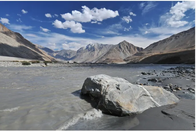 Na het ontbijt staat u wellicht de spectaculairste en meest afwisselende autorit van deze reis te wachten. Eerst volgt u de Nubra Rivier (die verder stroomopwaarts Shyok heet). U volgt de woeste rivier door een breed dal langs kleine dorpjes waar zelden een buitenstaander komt, over zandduinen en wellicht een enkele keer dwars door een kleine zijrivier. Een prachtige en onontdekte route! De laatste 46 kilometer gaan geheel door onbewoond gebied. Maar dan ineens duikt er een klein dorpje op, met groene velden en een kleine gompa tegen de berghelling erboven. Dit is Shyok. Hier zult u de komende drie nachten verblijven in Shyok River Lodge, een community-based accommodatie. De lodge is onderdeel van een traditioneel Ladakhi huis en is aan de buitenkant niet van dat van de buren te onderscheiden. De familie woont beneden onder dezelfde omstandigheden als de meeste Ladakhis. Dat zult u wellicht primitief vinden (de huizen zijn vrij stoffig omdat ze van aangestampte leem zijn gemaakt) maar het ontbreekt deze mensen aan niets essentieels. Uw eigen verblijf is op de eerste verdieping, schoon, met luxe matrassen en een eigen badkamer.