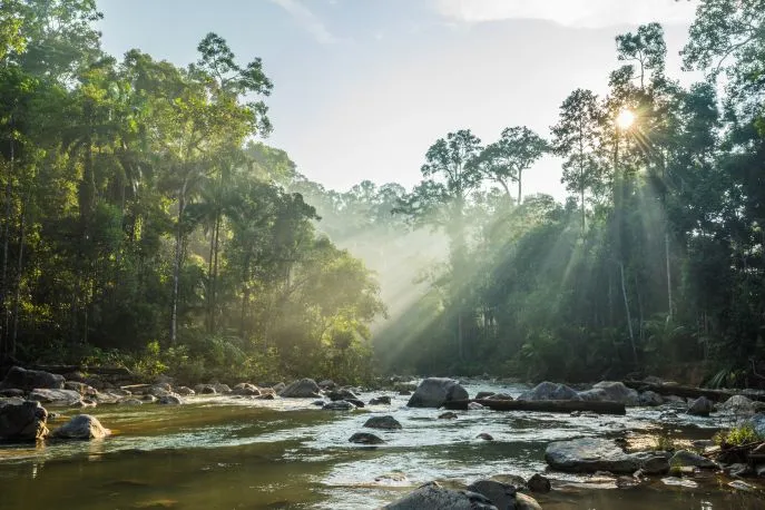 Na het ontbijt maakt u een boottocht over de Sungai Kinchin-rivier in Taman Negeri Rompin. Deze riviercruise is geschikt voor alle leeftijden en biedt een mooie manier om het regenwoud vanaf het water te ervaren. Onderweg vaart u langs dichtbegroeide oevers, waar u kans heeft om apen, vogels en andere dieren te zien. De boot stopt bij Sungai Kernam, een plek met helder water waar u kunt zwemmen of uitrusten. Het gebied is goed geschikt voor een korte pauze of picknick. U kunt hier genieten van de rust en het uitzicht. Na de boottocht keert u terug naar het resort voor de lunch. In de middag vertrekt u voor een begeleide trekking naar de Mahkota-waterval (ca. 4 uur). De wandeling voert u door dicht regenwoud, langs riviertjes en grote varens. Onderweg is er aandacht voor sporen van dieren, zoals olifanten, en de flora van het gebied – waaronder de opvallende reuzenpalm met zijn grote bladen. De Mahkota-waterval ligt in een afgelegen deel van het park en is ongeveer 50 meter hoog. U kunt er zwemmen of even pauzeren aan de rivier. Het water is helder en verkoelend. Na een rustmoment keert u via dezelfde route terug naar het resort.