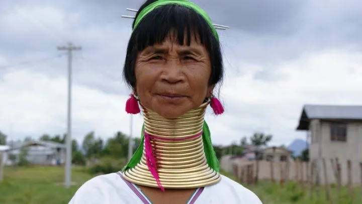 De reden dat ik naar Loikaw reis is vanwege het Padaung volk, of ook wel ‘longneck’ of ‘giraffenvrouwen’ die hier leven. Ik bezoek hier een traditionele markt waar ik echt de enige toerist ben en waar je duidelijk merkt dat de mensen hier geen toeristen gewend zijn. Op de markt vind je vele volkeren zoals de Padaung, Pa’o en Kayah. De mannen die naar deze markt komen, komen vooral om met elkaar te drinken. Er wordt veel te veel gedronken als je het mij vraagt en af en toe lopen er dan ook flink wat gekken dronken rond.  Een lokale delicatesse wordt hier met huid en haar verslonden; gebakken kikkers en spreeuwen! Uiteraard word ik ook hier weer vriendelijk ontvangen en gevraagd om alles te proberen. Ik besluit een slokje gestookte rijstwijn te proberen maar dit is toch niet echt mijn drankje, enorm sterk! Ik verbaas mij erover dat mannen hier zoveel van drinken. Na de markt gaan we opzoek naar de Padaung vrouwen. We stoppen ergens langs de weg en lopen vervolgens een dorpje in. Al snel zie ik de eerste Padaung vrouw. Wat een eng gezicht al die ringen om haar nek en onder haar knieën! Ik vraag aan haar hoe oud ze is maar ze vertelt mij dat ze dat niet meer weet. De gids vertelt mij dat veel Padaung vrouwen naar Thailand zijn verhuist vanwege betere inkomsten ook vertelt ze mij dat de traditie van de Padaung langzaam uitsterft omdat veel kinderen de ringen niet meer dragen. We bezoeken een aantal Padaung families waar ik hartelijk word ontvangen en waar ze erg open zijn over hun levenswijze en tradities. Ik krijg van de laatste Padaung familie waar ik kom een prachtige zelf geweven doek mee omdat ik hier de kinderen potloden en stickers had gegeven.