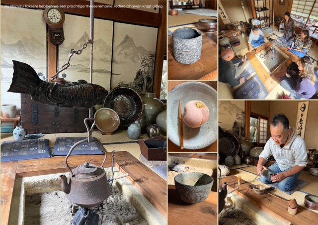 Elke ochtend werden we verwend met een door hen gekookt ontbijt, met broodjes van de moeder van een van de andere keramisten. Dierbaar is ook een spontane theeceremonie op de zolder van een atelier terwijl een enorme regenbui het houten huis ranselde. Zulke liefdevolle details maken dat deze reis ook echt ons hart raakte.
